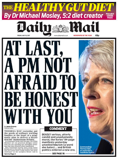So how does Ms May propose to move forward with sufficient success to see off any opposition? Simples. It is down to good, old-fashioned, blatant, shameless, premeditated and calculated corruption. You think I jest? Consider today’s Daily Mail front page, with its propagandist apologia of “AT LAST, A PM NOT AFRAID TO BE HONEST WITH YOU”.